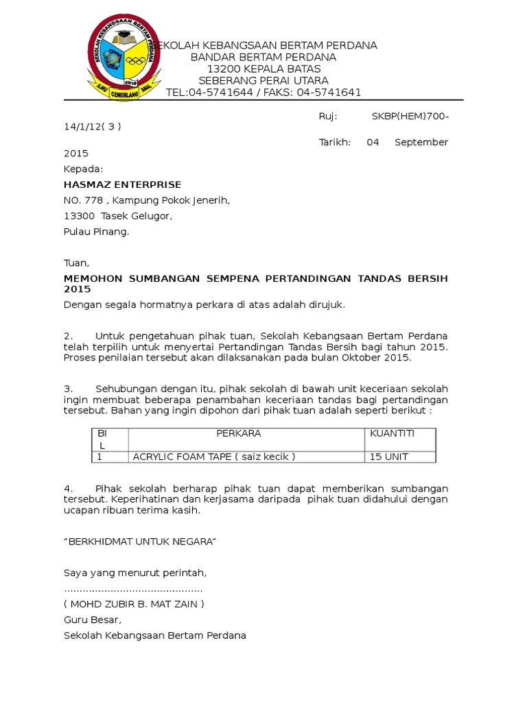 Murid lain dapat memberitahu guru kelas jika dia terjatuh. Dan apabila hamba-hamba-Ku bertanya kepadamu tentang Aku maka jawablah bahawasanya Aku adalah dekat. Surat Minta Sumbangan Untuk Keceriaan - 22 naiktaraf surau ke masjid ini juga adalah bertepatan dengan usaha untuk membina sebuah masjid di tapak sedia ada yang mana seorang penderma telah bersetuju untuk menyiapkan pembinaan sebuah masjid.